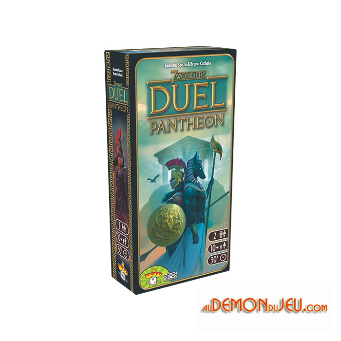 La boîte contient 1 plateau Panthéon, 15 cartes Divinité, 1 carte Porte, 5 cartes Grand