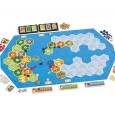 24 tuiles Terrain, 11 tuiles Mer, 14 pièces de cadre / sections maritimes, 12 jetons numérotés, 6 jetons Repaire de pirates, 3 pistes Mission, 3 fiches spéciale PV, 76 pièces dor, 88 figurines, 6 bancs de poisson, 24 sacs dépices, 4 fiches Coûts de construction, 1 livret de règles.