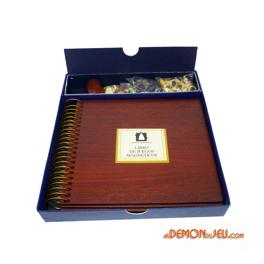 Superbe coffret en forme de livre composé de 5 pages en bois représentant 8x jeux parmi les plus classiques.