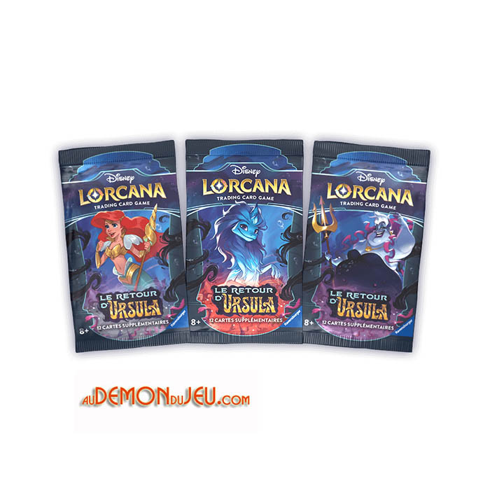 Chaque Booster Le Retour d'Ursula contient 12 cartes aléatoires en français du Jeu de cartes à collectionner Disney Lorcana :