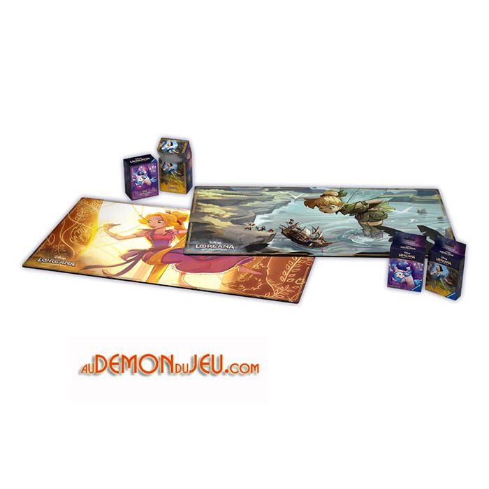Les tapis de jeu Disney Lorcana du 4ème chapitre représentent La Fée Clochette et Raiponce.