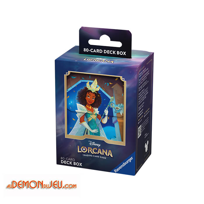 Boîte de rangement Disney Lorcana à l'effigie de Tiana pouvant contenir jusqu'à 80 cartes protégées.