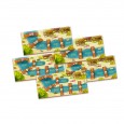 10 nouveaux meeples, 5 plateaux de joueurs, 1 livret de règles