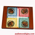 Le Plateau en bois présente recto-verso deux reproductions d'anciens modèles de jeux. les illustrations sont en Pvc ce qui assure une résistance à toute épreuve.