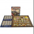 Le Matériel de jeu : 1 plateau de jeu, 5 plateaux Province, 14 rangées de Bâtiments alternatives, 21 dés à 6 faces, 15 disques Joueur, 1 "émissaire du Roi", 20 jetons +2, 60 ressources, 85 jetons Bâtiment, 30 jetons Soldats, 16 tuiles Caprice, 1 marqueur Année, 25 cartes Ennemis, 24 cartes Gouverneur, 29 cartes Destinée, 4 scénarios, 1 livret de règles