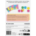 Le Matériel de jeu : 4 paquets de 6 Kumi (tuiles de couleur), 50 cartes ""modèle"", 4 tapis individuels en tissu, 1 livret de règles