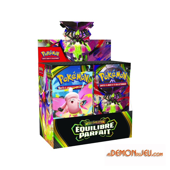 Considérée comme le produit central de toute extension Pokémon, la display ME03 Équilibre Parfait permet d'explorer pleinement la nouvelle série Méga-Évolution.