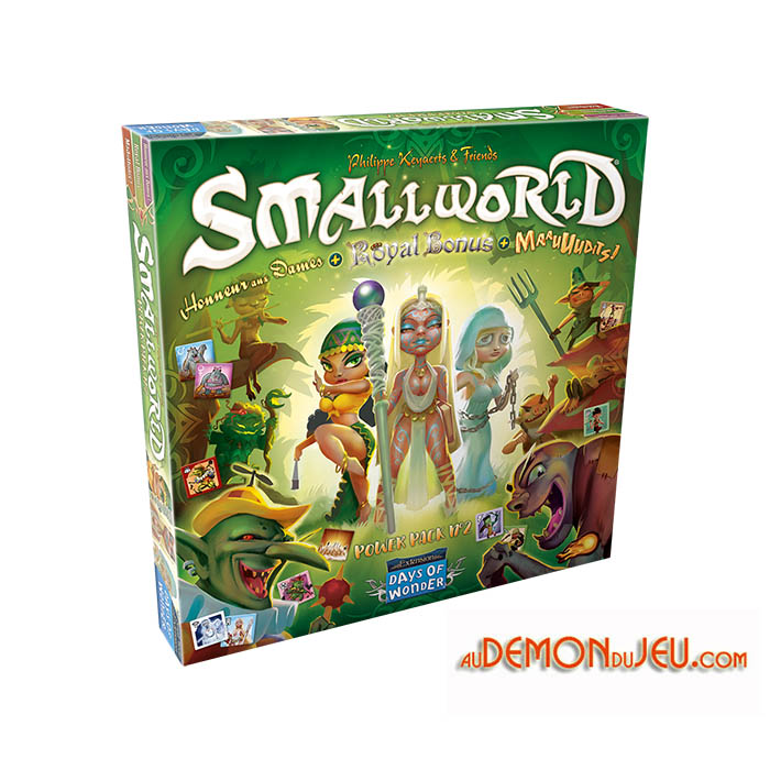 Ce Power Pack regroupe tous les Peuples et Pouvoirs Spéciaux de Maauuudits !, Honneur aux Dames et Royal Bonus ainsi qu'une boîte pour ranger et organiser tous les pions.