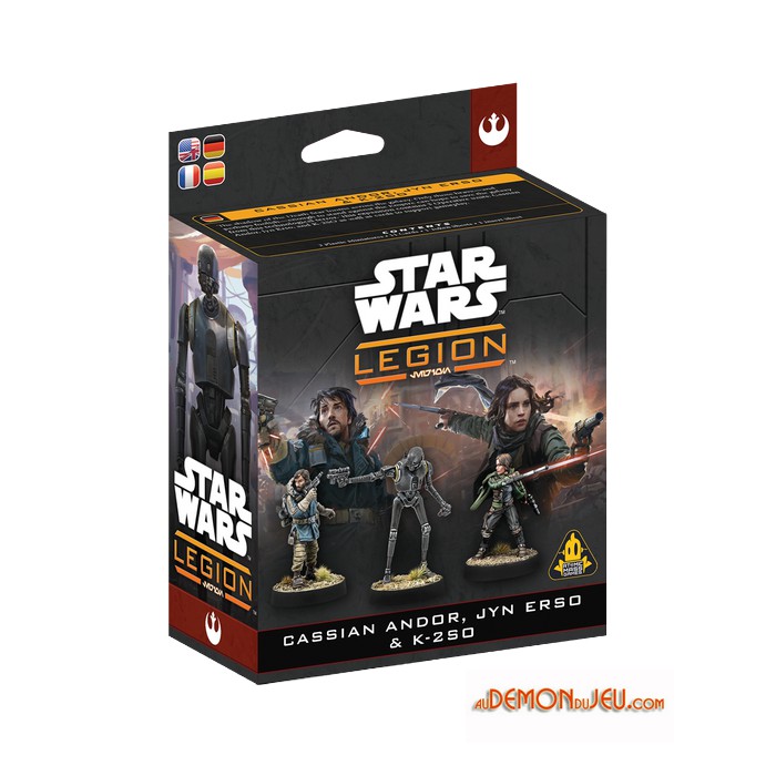 Cette boîte d'extension pour Star Wars: Légion, le jeu de figurines, contient trois figurines emblématiques : Cassian Andor, Jyn Erso et K-2SO, héros du film culte Rogue One.