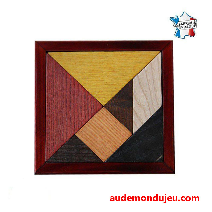 Superbe Tangram artisanal en bois Français (différentes essences de bois français sont utilisées pour chaque pièces : Frêne, Sycomore, charme, buis,...)