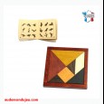 A la fois puzzle et casse tête, le Tangram en bois révèle de nombreuses possibilités de jeux.