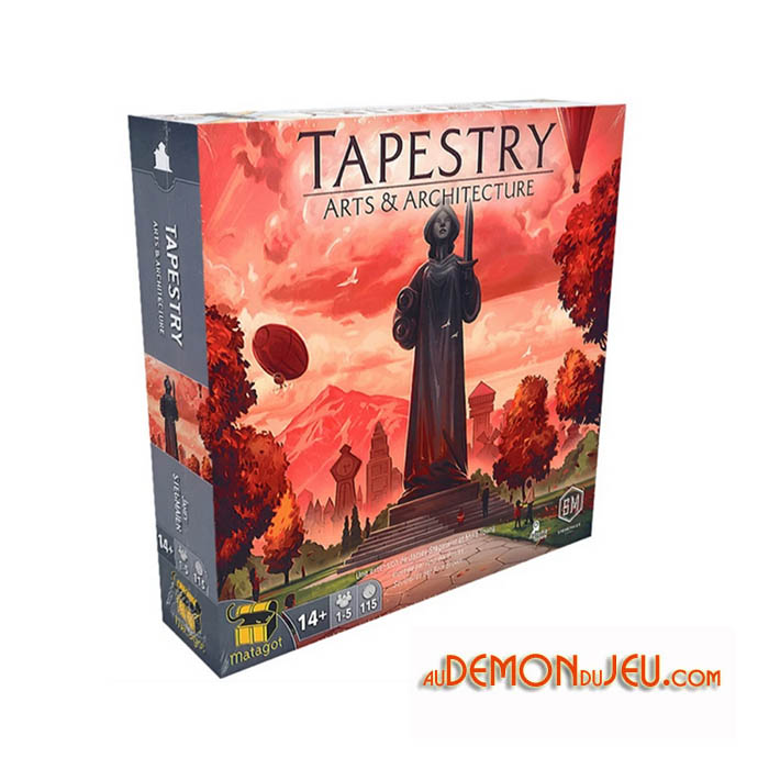 Choisissez parmi une variété de nouveaux tapis de capitale, une nouvelle piste d'avancement avec de nouveaux types de cartes et de tuiles, ainsi que plus de civilisations, de cartes de tapisserie, de cartes technologiques et de miniatures/cartes emblématiques dans cette deuxième extension pour Tapestry : Art & Architecture.
