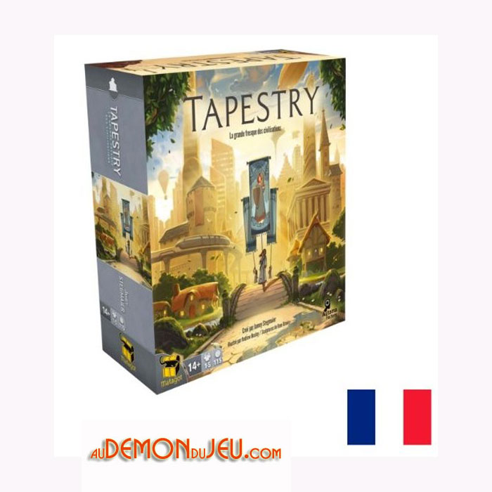 Avec seulement 4 pages de règles, la complexité et les variations de Tapestry émergent des 16 civilisations uniques, 43 cartes de tapisserie, 33 cartes techniques et 3 dés personnalisés.